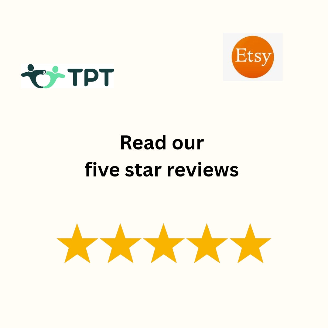 We’re proud to share our resources on Etsy and Teachers Pay Teachers, where teachers, parents, and homeschoolers love our materials.